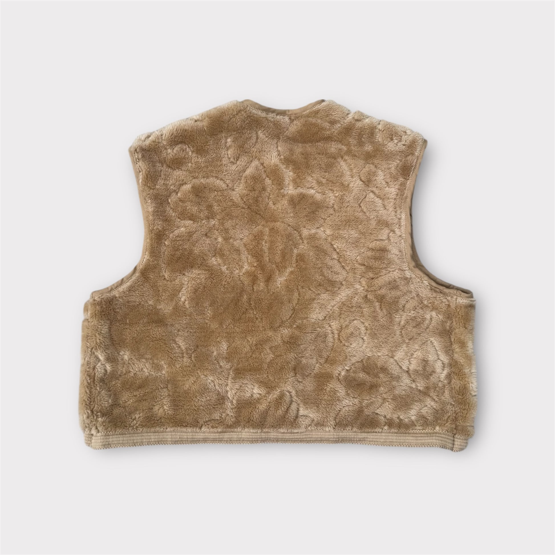 Boléro sans manches à la coupe droite et confortable. Réalisé en fausse fourrure upcyclée couleur sable, il apporte chaleur et douceur à vos looks d’hiver. Pièce unique et éthique.