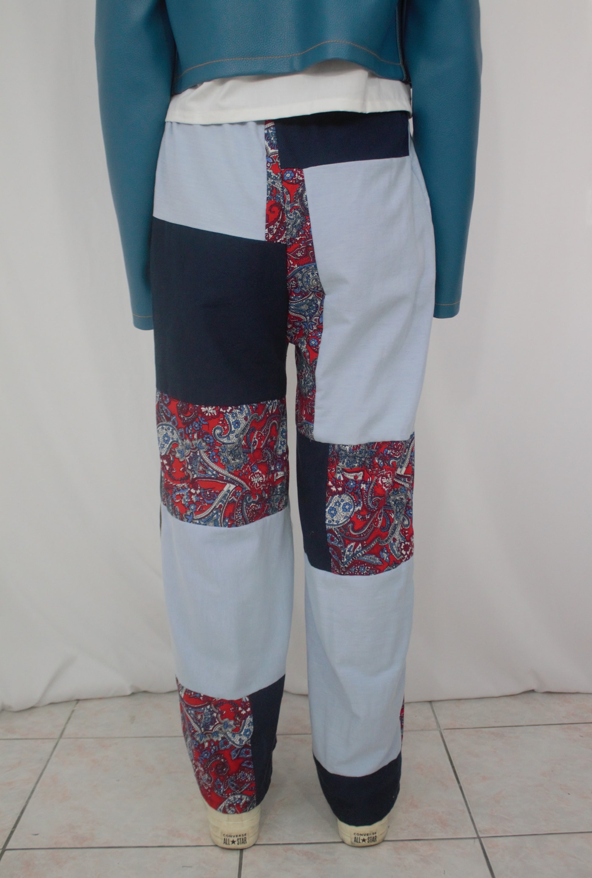 Pantalon patchwork très tendance et s'adapte a tout les styles grâce à ses mélanges de couleurs de d'imprimer. Ce pantalon est upcyclé à base de chemises. Parfait pour un look casual et confortable.