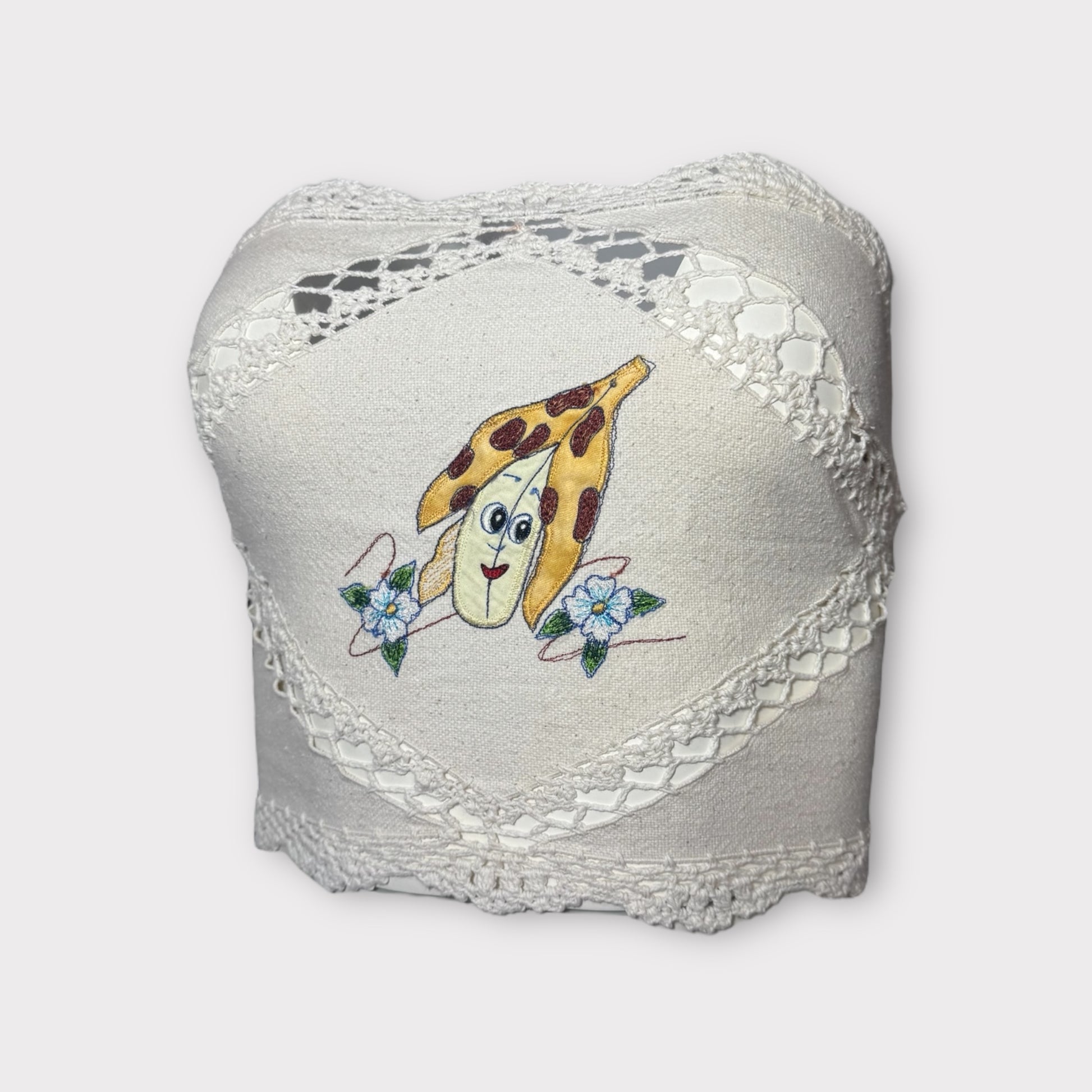 Top crée à partir d’un ancien napperon au teinte beige avec une broderie . Ce top bustier se lace dans le dos, pour un look féminin et iconique.